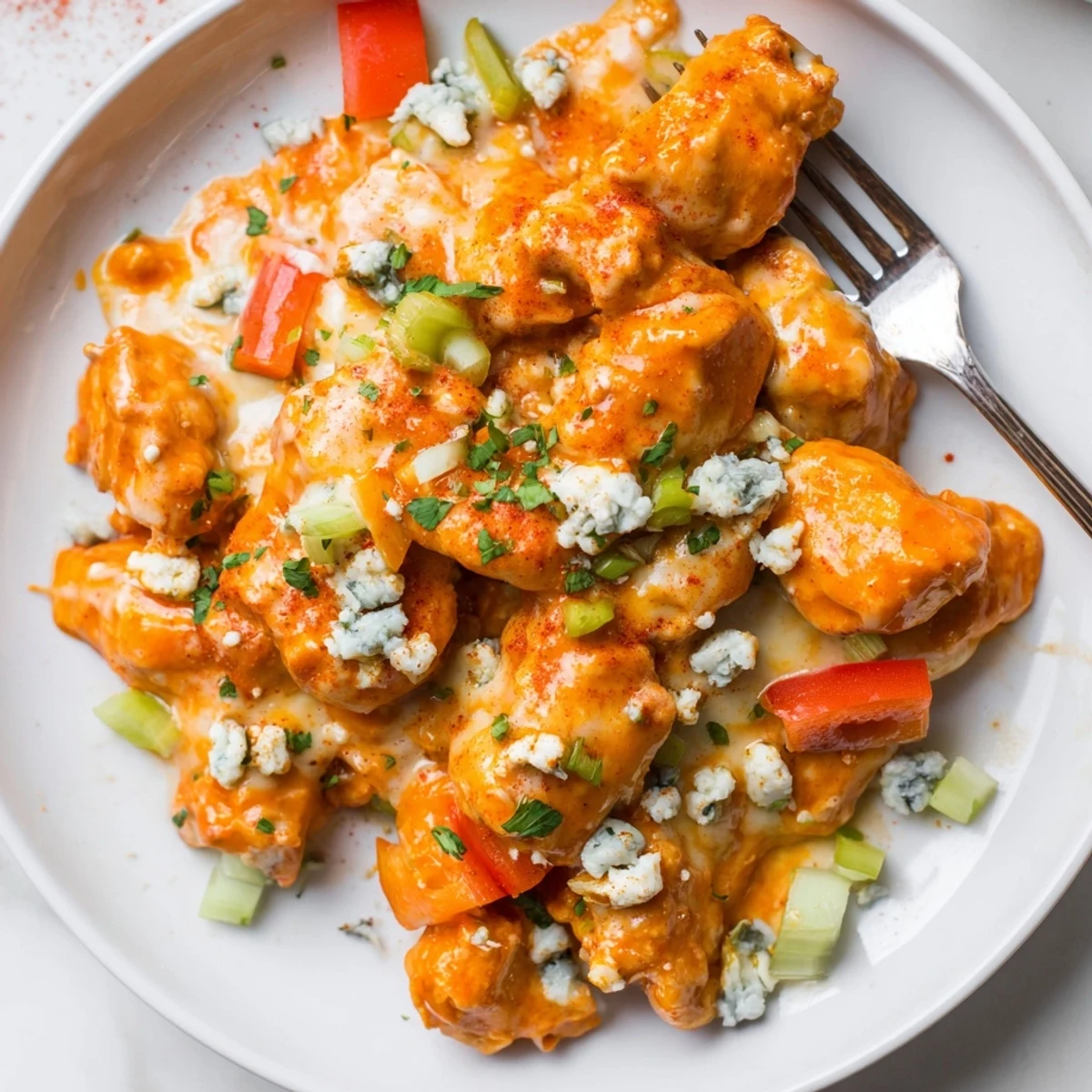 - Onion: Adds sweetness and rounds out the buffalo kick, and dicing small means it melts into the sauce.
