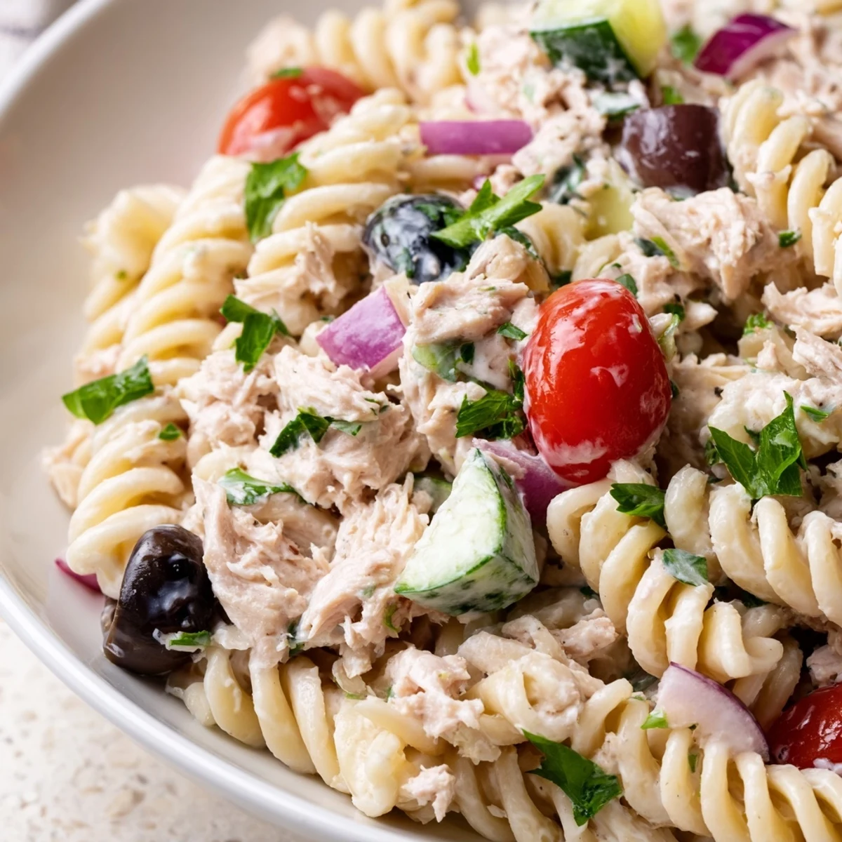 Summer afternoons in my college apartment meant one thing: standing over the stove praying the pasta wouldn't boil over while my roommates raided the fridge for anything that could technically count as a vegetable. We'd dump whatever we had into a bowl, call it dinner, and eat it straight from the mixing bowl while watching terrible reality TV. That chaotic energy birthed this tuna pasta salad, though I've since learned that actually following a recipe makes it about ten times better.
